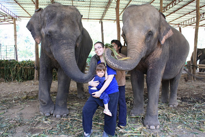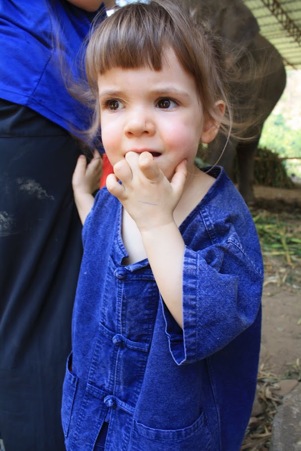 Pour moi qui adore les animaux, je rêvais de ce contact privilégié avec les mastodontes qu'on n'aperçoit normalement que de loin dans les zoos. Et comme la date fatidique de mon départ de Chiang Mai approche, la semaine dernière, j'ai réservé. Je voulais faire une demi journée parce que je voulais tout d'abord être rentrée pour la sieste et ne pas imposer une trop grosse journée à mademoiselle. Malheureusement, pas de réservation possible à la matinée car pas assez de demandes, par contre, on a eu une réduction sur le prix de la journée. Qu'à cela ne tienne, Ernestine est capable de faire parfois des journées sans sieste, je réserve donc pour le lendemain.