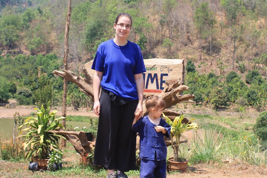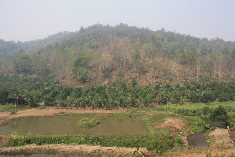 Vendredi arrive, on avait rendez vous entre 8h30 et 9h. Nous sommes allées attendre à l’hôtel d'en face car notre maison est presque introuvable pour qui ne connait pas. Un peu après 9h, le bus arrive: un petit bus d'environ 12 à 15 places, très confortable, climatisé, avec des petits rideaux bleus aux fenêtres. On passe encore prendre deux couples, et c'est parti, direction la campagne. En regardant le paysage par la fenêtre, j'ai un peu le même ressenti qu'en allant visiter Doi Suthep: Il y a beau avoir des arbres verts, j'ai malgré tout une impression de sécheresse qui me frappe. Le sol est recouvert d'herbes desséchées, de feuilles mortes. Je n'ai pas cette impression de luxuriance à laquelle je m'attendais en venant dans un pays tropical. Je comprend pourquoi les feux de broussaille et de forêt sont communs.