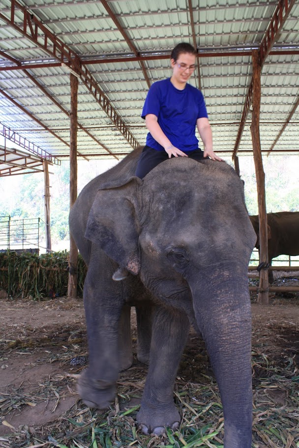 La pause est surtout destinée aux éléphants, qui peuvent continuer de manger sans rien faire d'autre. Puis nous apprenons les derniers ordres, nous remontons dessus chacun notre tour, et c'est enfin l'heure de manger.